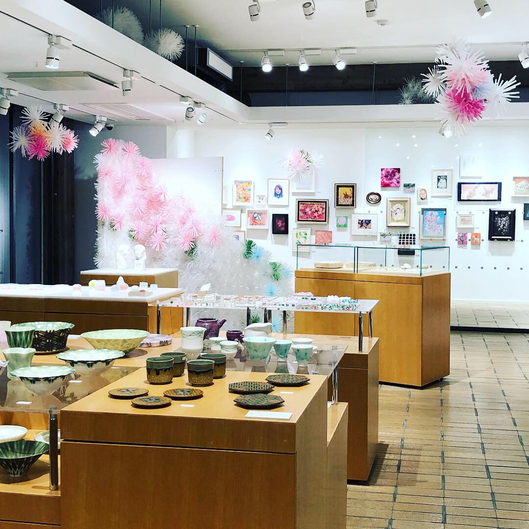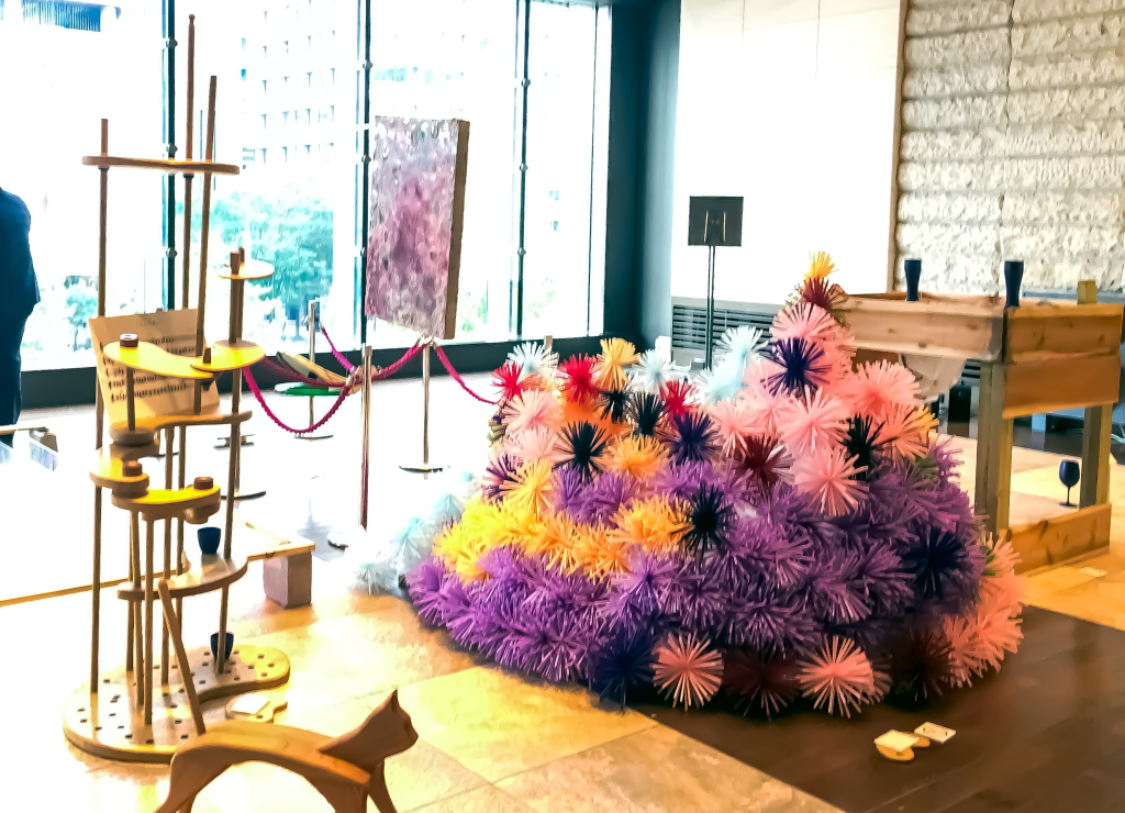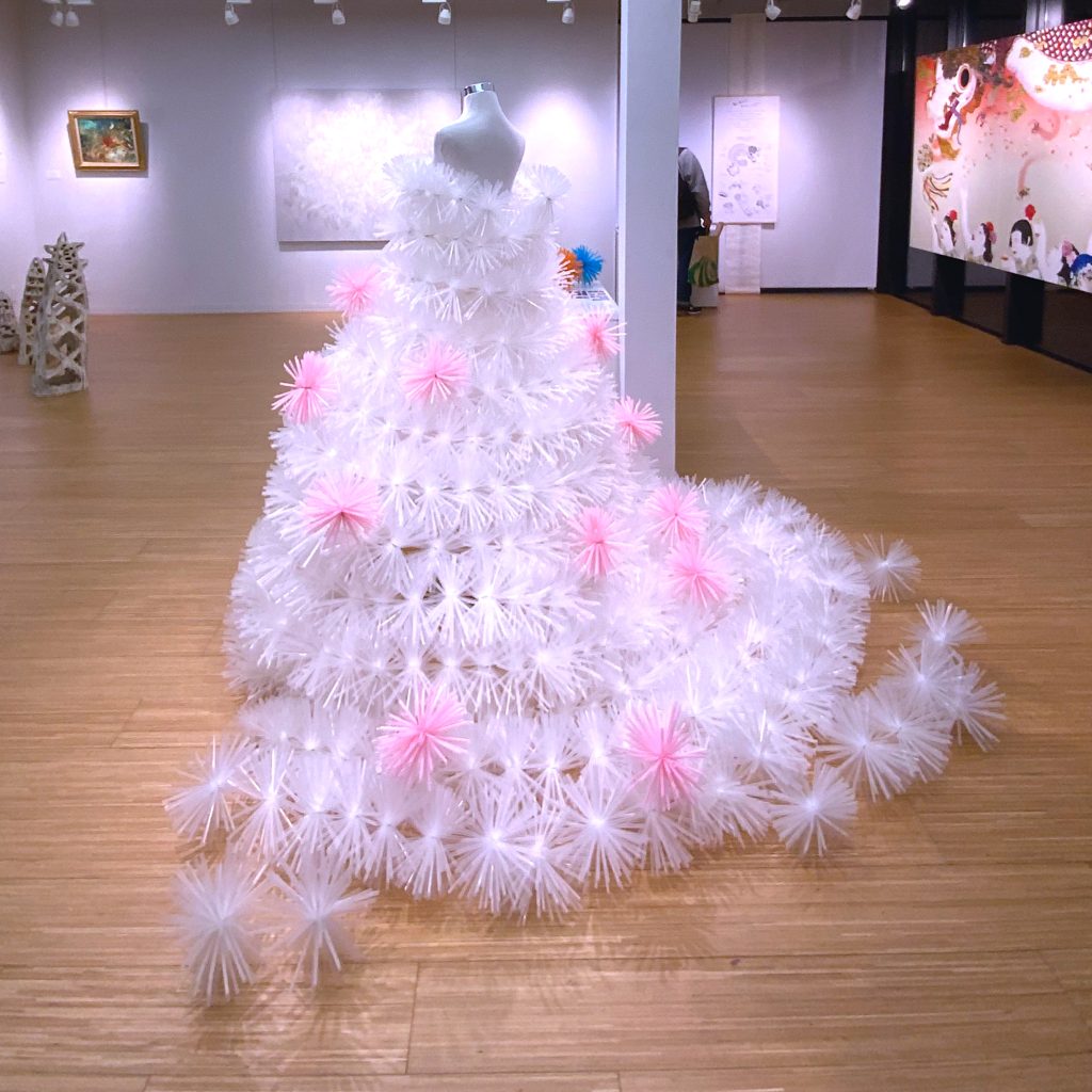 藝大アートプラザの会場を春色に飾った妖精のイメージインスタレーション。