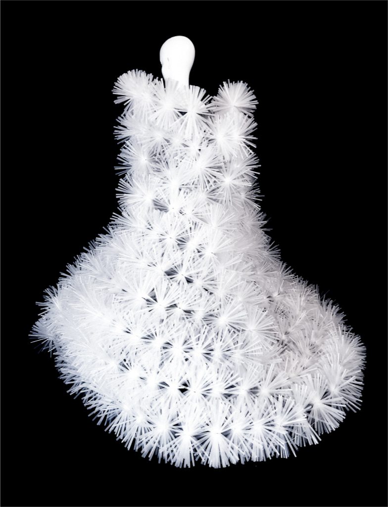 記憶の結晶でできたドレスをイメージした。歩いていくうちに、思い出が一つずつポロポロ落ちてゆく。